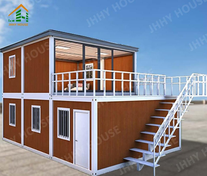 - Escalera con pasamanos y un piso de madera-plástico con una valla completa.